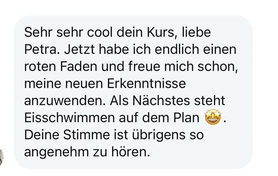 Du bestimmst das Tempo. Du kannst den Kurs kompakt durcharbeiten oder über mehrere Wochen in deinen Alltag integrieren.
